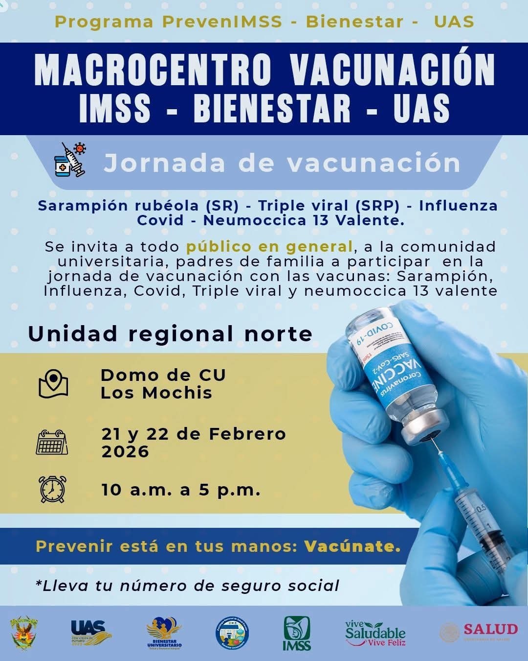 La UAS invita a la Jornada de Vacunación en el Macrocentro IMSS–Bienestar–UAS.