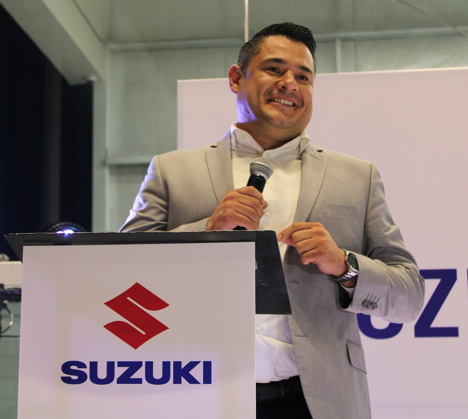 Para presidir el acto protocolario se contó con la presencia del señor Rodrigo Solana, Director de Operaciones de Grupo Solana; Julia Solana, Directora de Suzuki Zona Norte; Esaú Baes, Gerente General Suzuki; Takayuki Iguchi, Director General de Suzuki Motor México; Hideki Takata, Director de Operaciones de Autos; Rui Sasaki, Gerente General Operativo de Autos; Tatsuya Sato, Director de Post Venta. En representación de las autoridades municipales, estuvieron presentes Gabriel Algandar, Director de Promoción Económica y Paula Samantha Guzmán León, Síndica Procuradora.